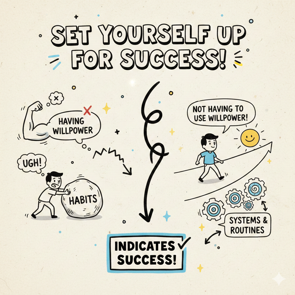 One of the most counterintuitive insights from modern psychology is that willpower is a limited, depleting resource — and it’s not something we can reliably strengthen over the long term. The real lever isn’t willpower itself, but the environment around us.