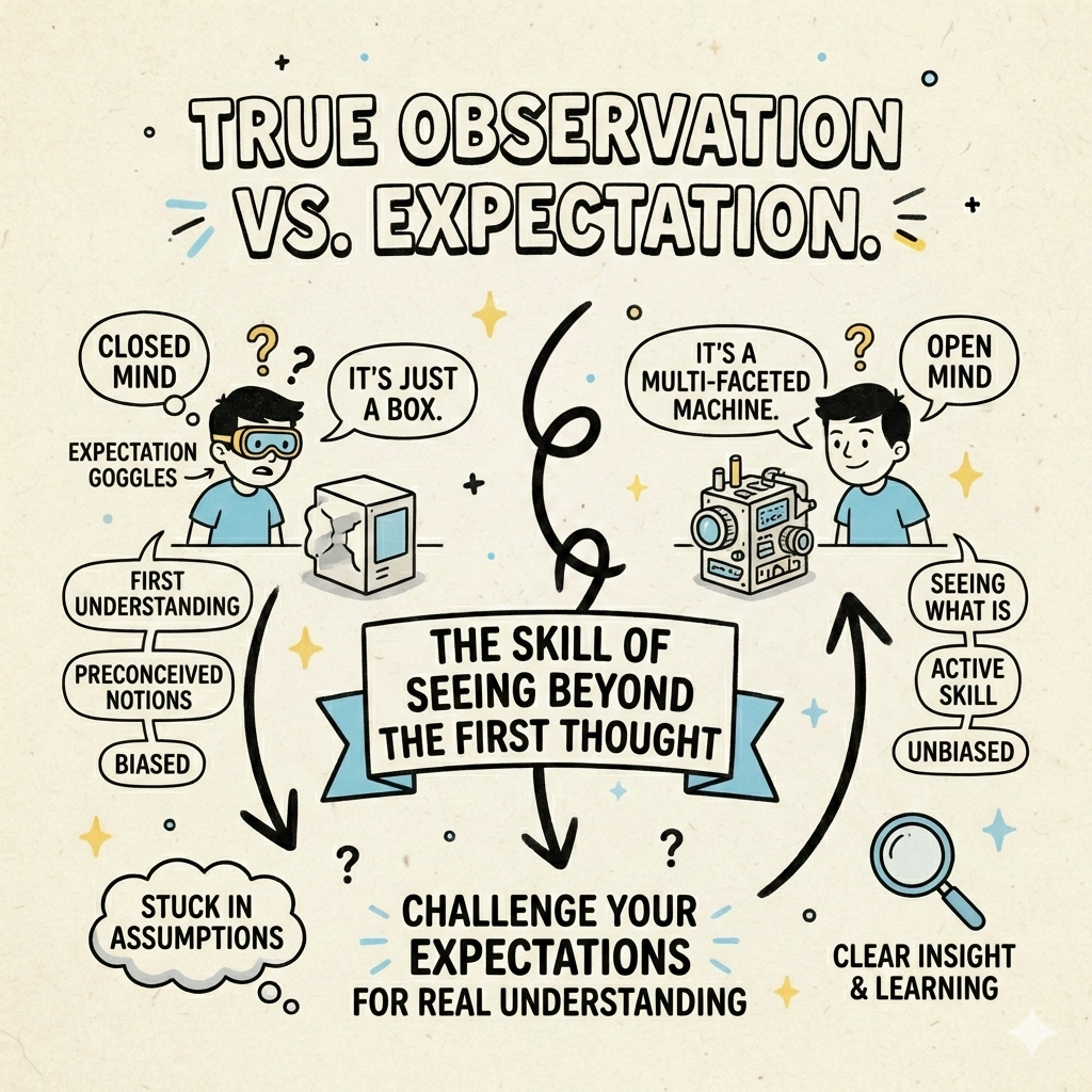 “To be able to see what we see instead of what we expect to see is indeed a skill in itself, not like a character trait of being ‘open-minded.’ Those who think of themselves as being open-minded are often even more prone to stick to their first understanding, as they believe to be without natural prejudices and therefore don’t see the need to counterbalance them.”